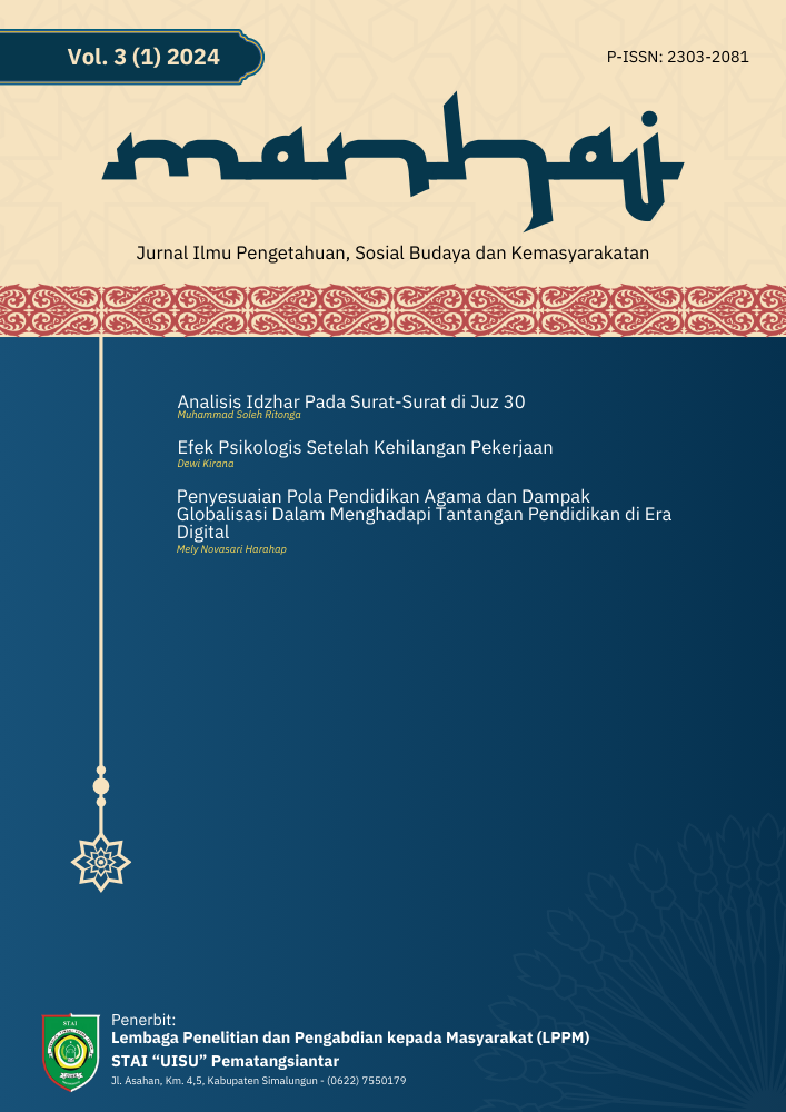 MANHAJ: Jurnal Ilmu Pengetahuan, Sosial Budaya dan Kemasyarakatan menerima naskah berupa artikel, liputan penelitian, laporan liputan, laporan akademik dan resensi. Dikelola oleh Lembaga Penelitian dan Pengabdian STAI "UISU" Pematangsiantar.